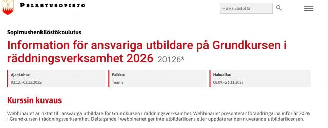 Räddningsinstitutet Webbinariernas tidtabell: Kl 12.30-13.30 på finska Kl 14.00-15.00 på svenskaLäs mera »